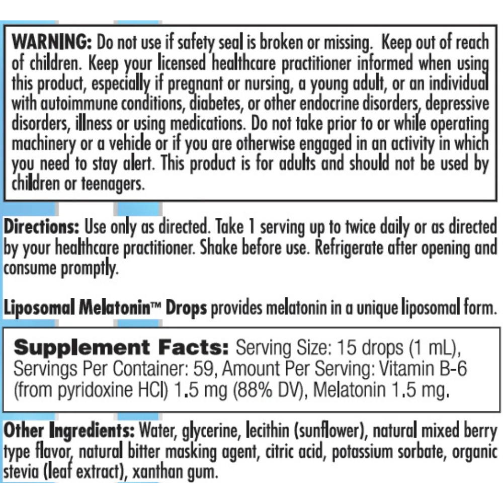Each serving contains 1.5 mg melatonin and 1.5 mg vitamin B6 in a unique liposomal liquid form for flexible dosing and optimal absorption*