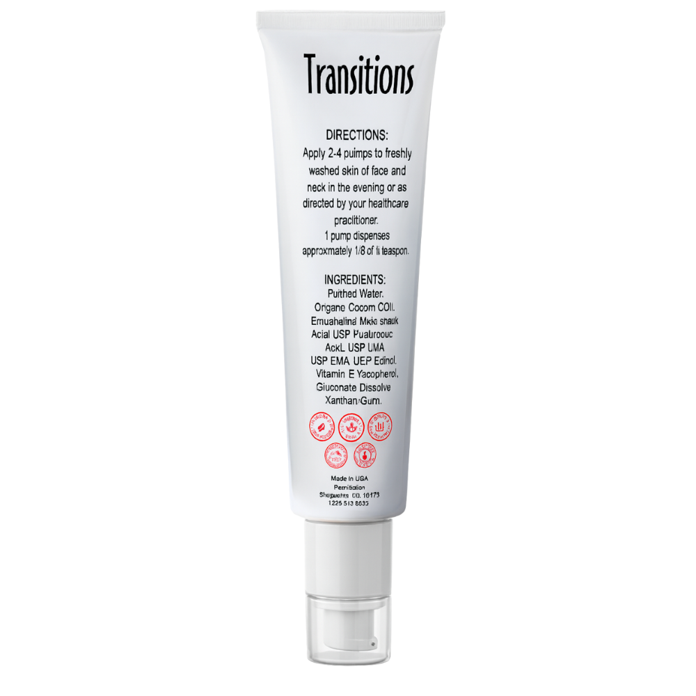 A nighttime moisturizer that helps turn back the clock to a more youthful complexion. Formulated with organic coconut oil and vitamin E, Transitions provides optimal moisture to reduce the appearance of fine lines and wrinkles.