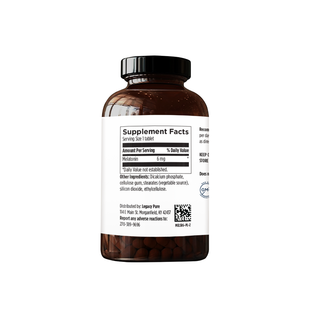 Melatonin SRT provides 6 mg in a sustained-release tablet to support healthy sleep, regulate circadian rhythm, and address age, dietary, or lifestyle factors affecting melatonin.
